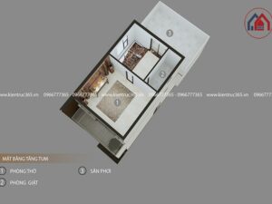 - Công năng: Phòng khách, phòng thờ, bếp, 4 phòng ngủ, phòng tập, vệ sinh