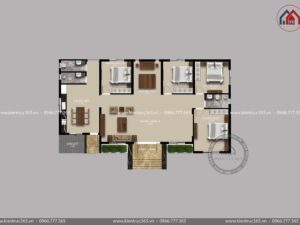 - Công năng: phòng khách, bếp, 4 phòng ngủ.