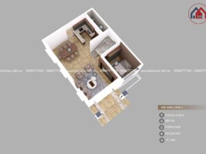 - Công năng: Phòng khách, phòng thờ, bếp, 4 phòng ngủ, vệ sinh