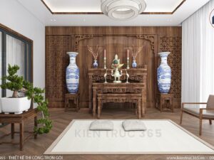 - Công năng: Phòng khách, bếp, phòng thờ, 4 phòng ngủ