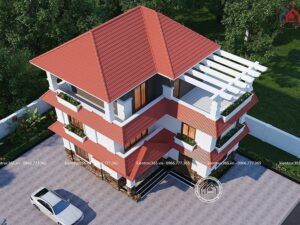 - Công năng: Gara, phòng khách, bếp và nhà ăn, 8 phòng ngủ, phòng thờ, sân phơi