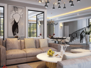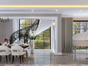 - Công năng: Phòng khách, bếp và nhà ăn, phòng sinh hoạt chung, 5 phòng ngủ