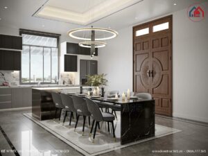 - Công năng: Phòng khách, bếp và nhà ăn, phòng sinh hoạt chung, 5 phòng ngủ