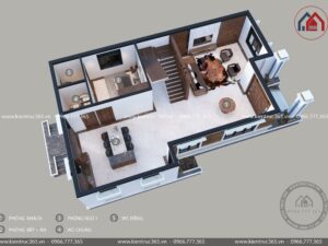 - Công năng: phòng khách, bếp và nhà ăn, phòng thờ, 5 phòng ngủ
