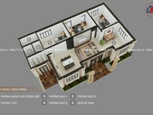 - Công năng: Phòng khách, phòng thờ, bếp, 3 phòng ngủ, vệ sinh