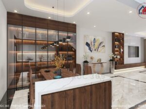 - Công năng: Phòng khách, phòng thờ, bếp ăn, 4 phòng ngủ, phòng gym, vệ sinh