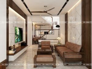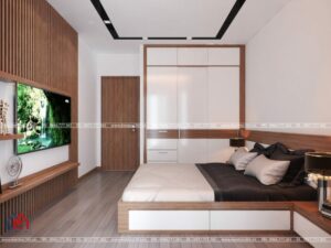 - Công năng: Phòng khách, phòng thờ, bếp ăn, 4 phòng ngủ, phòng gym, vệ sinh